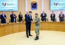 Секретарь подольского отделения партии «Единая Россия» Григорий Артамонов вручил награду подольчанину — участнику спецоперации