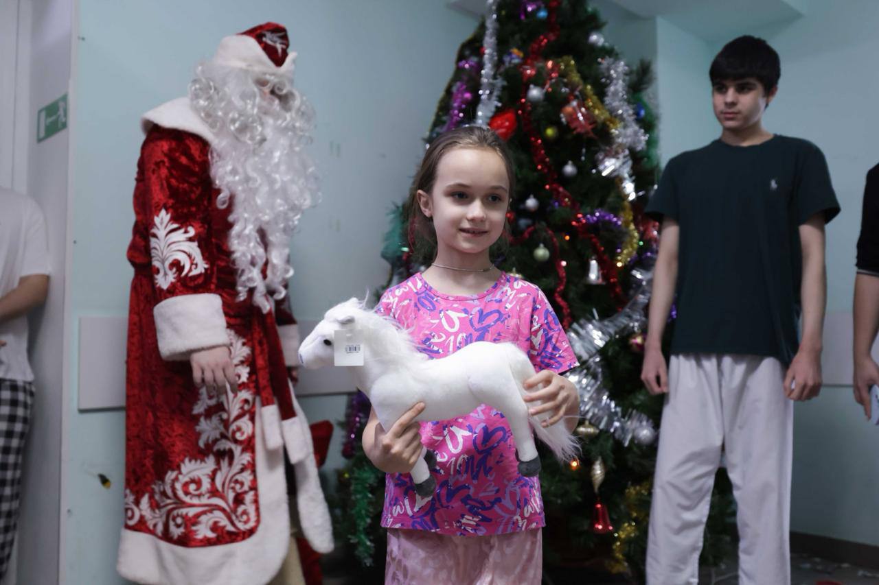 В гости к ребятам, проходящим лечение в кардиологическом, пульмонологическом и педиатрическом отделениях, пришли Дед Мороз, Снегурочка и Баба‑Яга. Для детей организовали праздничную программу: вместе водили хороводы, пели любимые песни, играли в подвижные игры и отгадывали загадки.