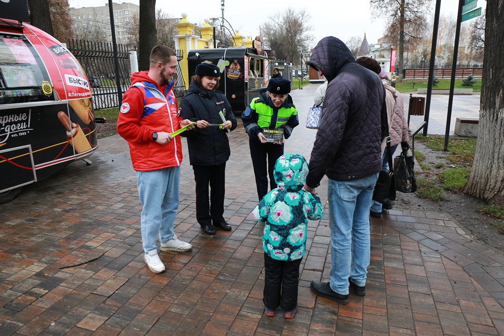 Сотрудники Госавтоинспекции городского округа Подольск совместно с Волонтерами Подмосковья провели пропагандистскую акцию в центральном парке им. В.Таллалихина, направленную на популяризацию ношения световозвращающих элементов.
