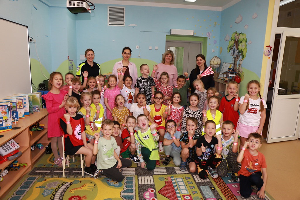Автоинспекторы рассказали воспитанникам о назначении светофоров и дорожных знаках, где и как безопасно переходить дорогу, а также о том, какие встречаются «дорожные ловушки» у них на пути. Стражи порядка объяснили, чем опасен неожиданный выход на дорогу из-за стоящего автомобиля и дали рекомендации по ношению световозвращающих элементов на верхней одежде. Кроме того, полицейские предостерегли ребят от спонтанного выезда на дорогу на велосипеде или самокате.