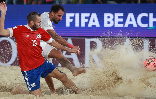 Сборная России по пляжному футболу обыграла команду Испании со счетом 4:2 и вышла в полуфинал чемпионата мира. В игре с испанцами были удалены российские игроки Алексей Макаров и Федор Земсков, они пропустят полуфинальную игру.