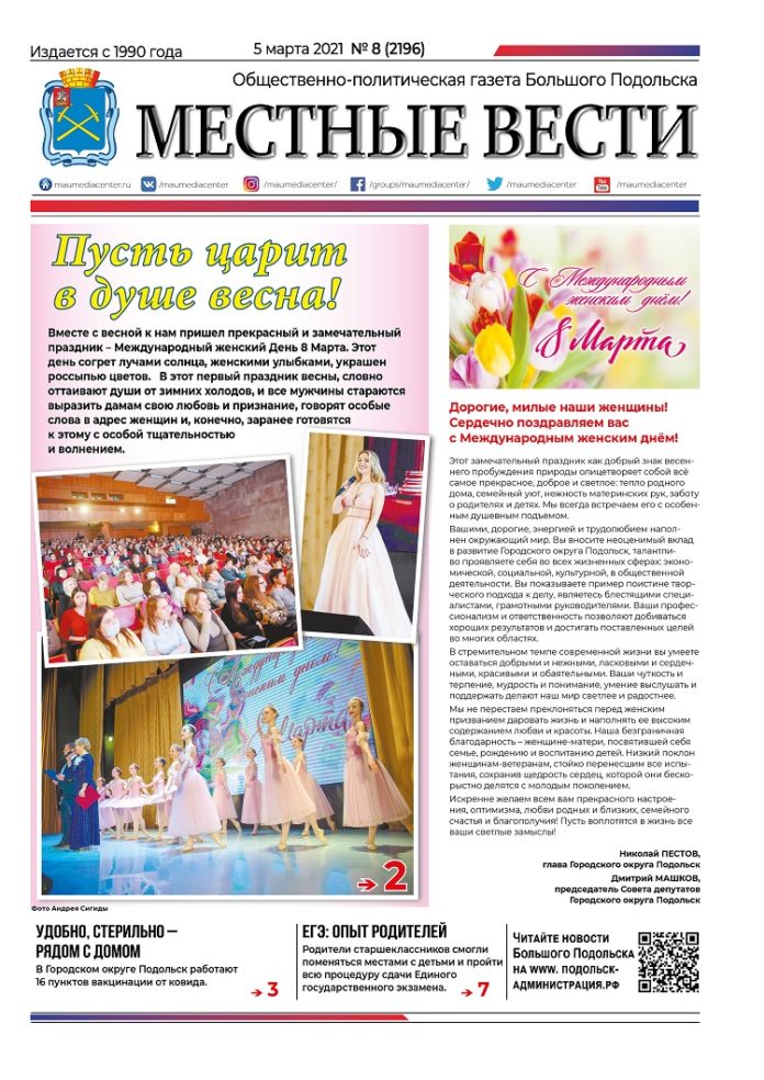Газета «Местные вести» № 08 (2196) 05 марта 2021 года
