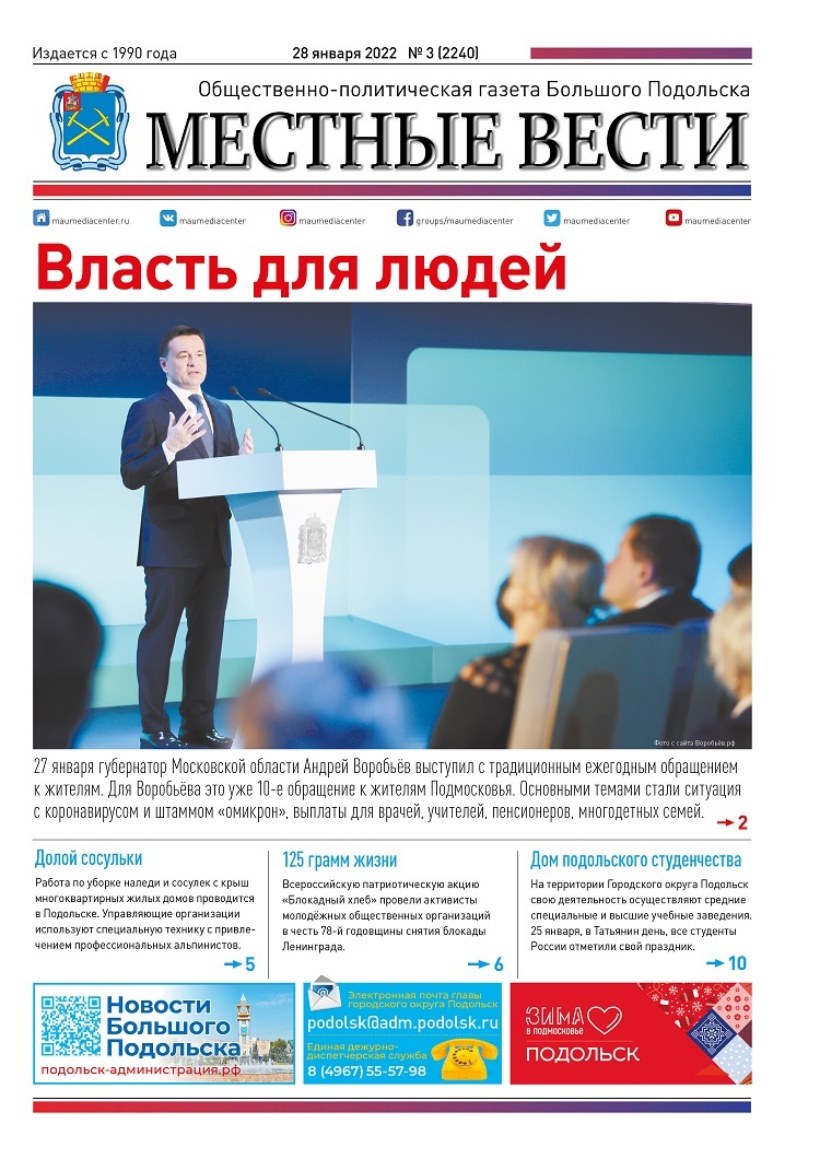 Газета «Местные вести» № 03 (2240) 28 января 2022 года