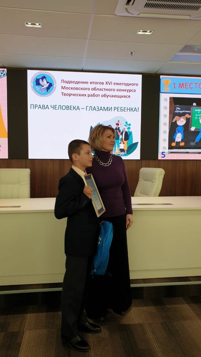Первое место жюри присудило Александру Дудину – ученику 4 класса Акатьевской школы из городского округа Коломна за работу «Права ребенка». Школьник не только изучил права, гарантированные Конвенцией ООН о правах ребенка, но и проиллюстрировал их аппликацией.