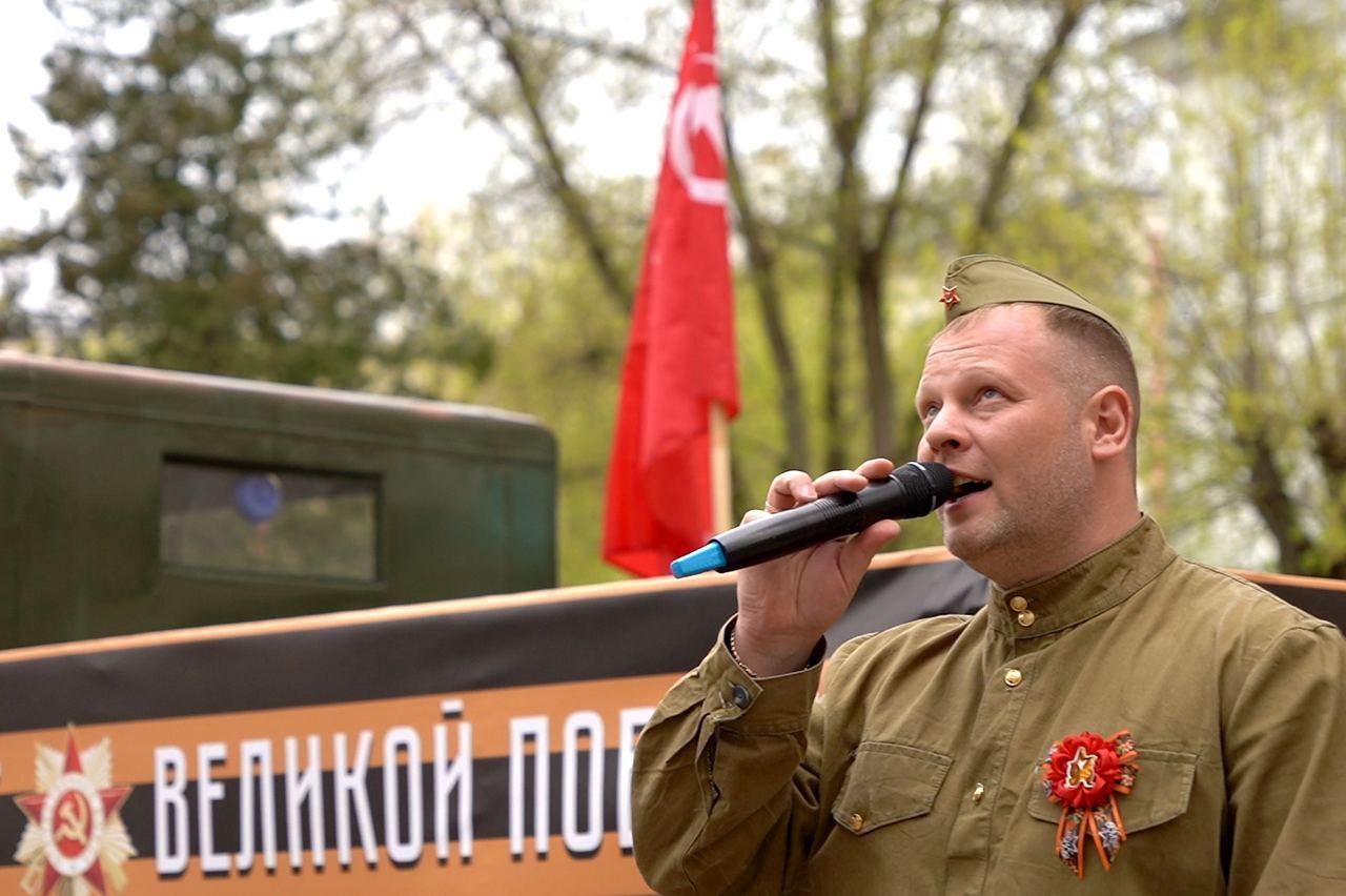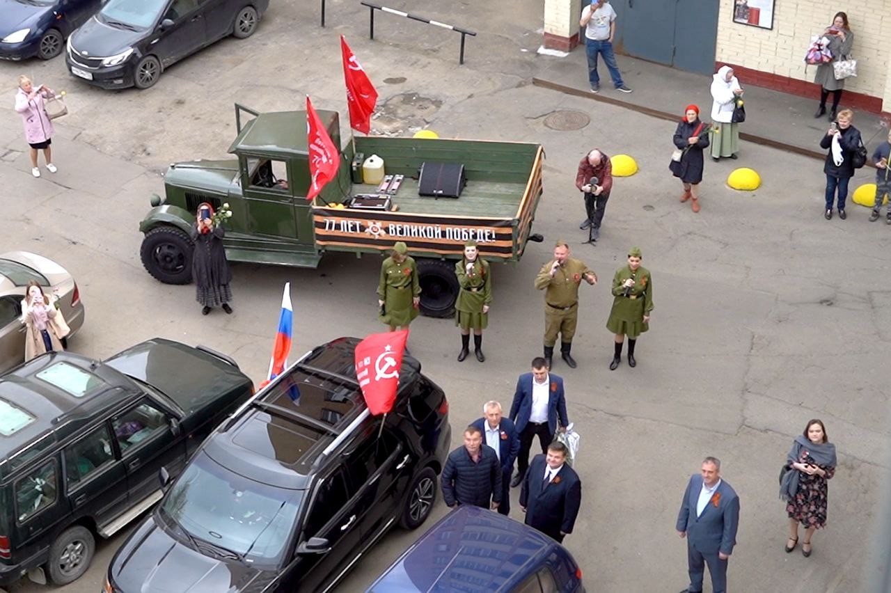 А во дворе дома на Комсомольской улице, где живёт Николай Иванович Герасимов, любимыми песнями поздравляли с Великим Праздником Победы дорогого ветерана и проживающих здесь подольчан участники организованной Комитетом по культуре Администрации округа творческой «фронтовой бригады».