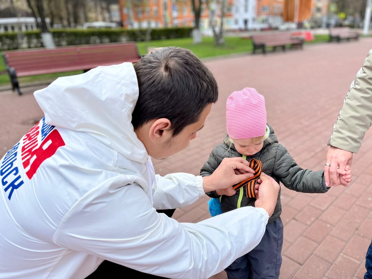 Символ Победы раздавали всем участникам, среди которых были молодёжные общественные организации, юнармейские отряды, ветеранские организации и неравнодушные жители.