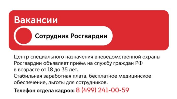 Домой Информация Центр специального назначения вневедомственной охраны Росгвардии объявляет прием на службу граждан РФ