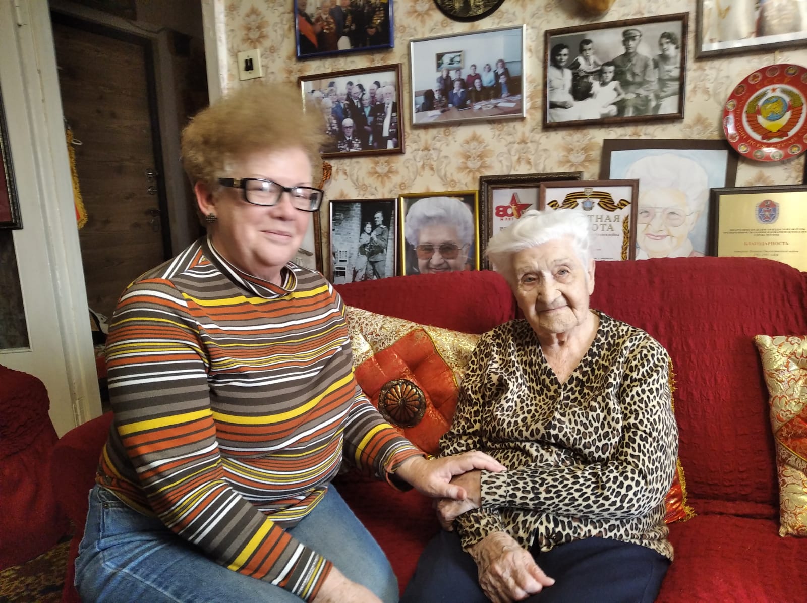 На фото: получательница социальных услуг АНО «Комплексный центр социального обслуживания граждан» Управления «Подольск» Рохлина Мария Михайловна; социальный работник Кузьмина Ирина Борисовна.