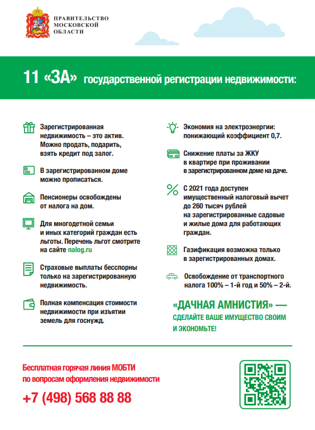 Дачная амнистия позволяет гражданам зарегистрировать отдельные виды недвижимости в упрощенном порядке — без направления уведомлений о начале/окончании строительства, получения уведомления о соответствии, разрешения на ввод в эксплуатацию и других процедур.