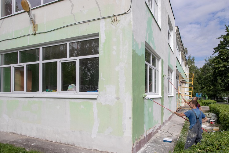 В Городском округе Подольск завершается ремонт детских садов. К примеру, в детском саду №64 «Непоседа» большая часть работ уже завершена – отремонтирована уличная веранда, обновлена кровля, установлены новые окна. Осталось привести в порядок фасад здания – рабочие уже приступили к покраске стен. На ремонт детского сада было выделено более 2,5 миллиона рублей.