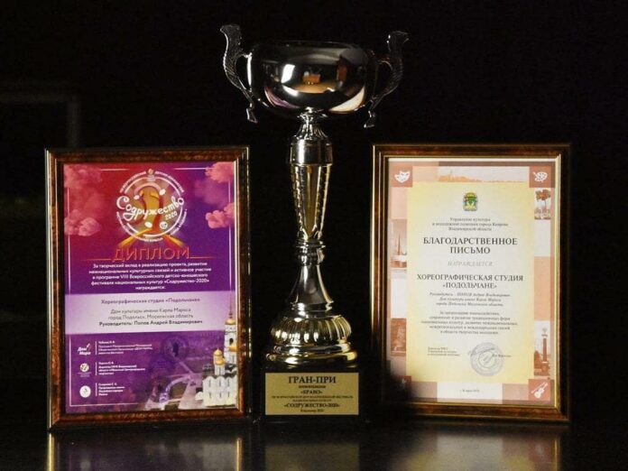 Хореографическая студия «Подольчане» ДК им. Карла Маркса стала обладателем Гран-При VIII Всероссийского детско-юношеского фестиваля национальных культур «Содружество – 2020» в номинации «Браво!». Он проходил с 1 по 5 ноября во Владимире при поддержке Фонда президентских грантов. Об этом на своей странице Instagram сообщил глава Городского округа Подольск Николай Пестов.