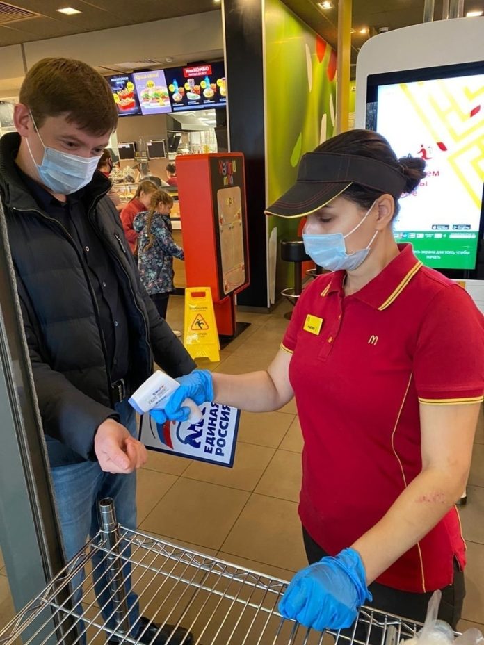 В рамках мониторинга и реализации федерального партийного проекта Всероссийской Политической Партии «Единая Россия» «Народный контроль», член Фракции «Единая Россия» в Совете депутатов Городского округа Подольск, муниципальный куратор партийного проекта Сергей Кулев провёл проверку ресторана быстрого питания «Макдональдс» по адресу: Городской округ Подольск, Проспект Ленина д.128/24, на предмет соблюдения норм СанПиНа такие как: наличие масок и перчаток у персонала, измерение температуры на входе, линии социальной разметки, наличие дезинфицирующих средств, регулярная обработка общедоступных поверхностей.