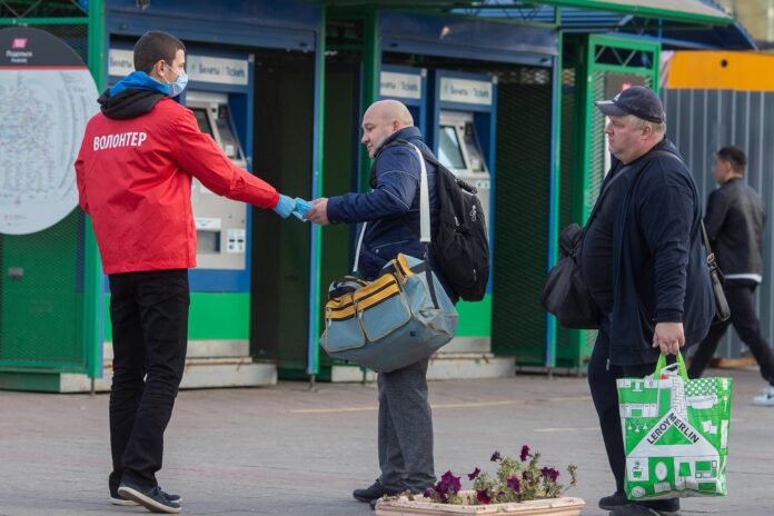 Добровольцы напоминают пассажирам об обязательном ношении масок в общественных местах, а в случае их отсутствия выдают индивидуальные средства защиты бесплатно.