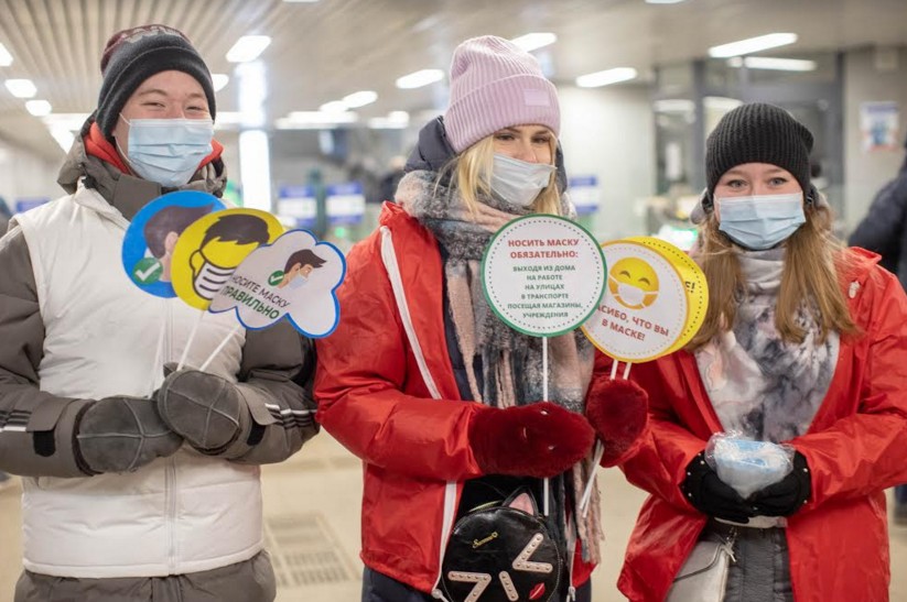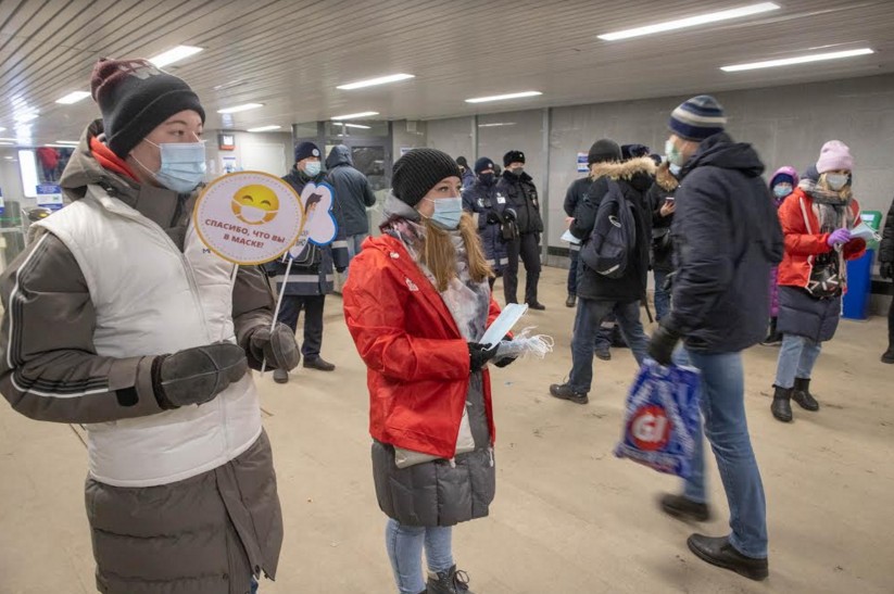 К участию в мероприятии также были привлечены волонтёры, которые провели очередную акцию по безвозмездной раздаче масок пассажирам электропоездов.