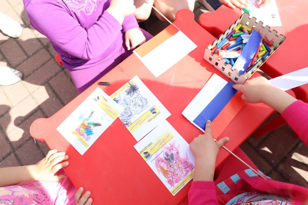 В рамках патриотической акции подольские волонтеры также раздавали всем желающим в парке трехцветные ленточки-символы флага.