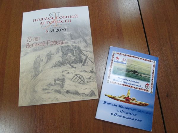В рубрике «Книги — новинки» в историко — краеведческом альманахе Подмосковный летописец №3 за 2020 год представлена брошюра «Подводная гвардия Великой Отечественной». В издании рассказано о шести моряках, уроженцах Подольска и Подольского района Московской области. Это — Николаев Валентин Филадельфович, Мызников Николай Петрович, Черняев Василий Александрович, Харламов Николай Яковлевич, Маричев Николай Михайлович, Тютюнов Иван Андреевич. Также брошюра повествует о шести подводных лодках, воевавших во время Великой Отечественной войны.