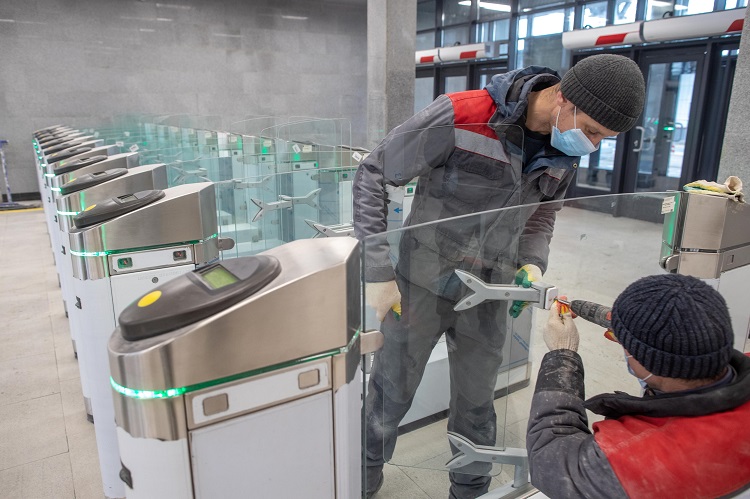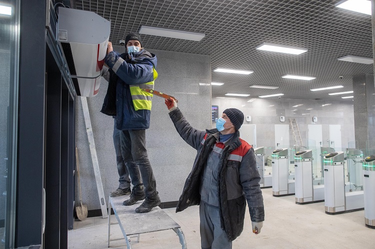 В настоящее время в вестибюле с подземной и надземной частью со стороны Вокзальной площади ведутся пусконаладочные работы подъемных механизмов. На объекте полностью завершены строительно-монтажные работы, заканчивается внутренняя отделка помещений.