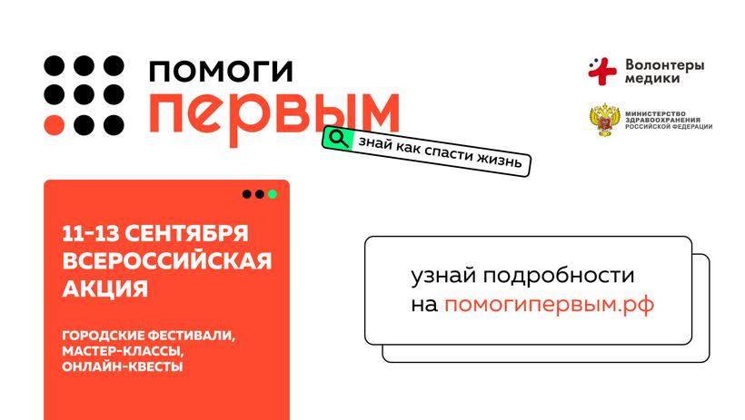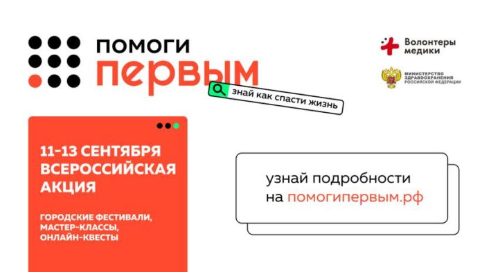 12 сентября – Всемирный день первой помощи. С 11 по 13 сентября по всей стране пройдет Всероссийская акция «Помоги Первым!» В рамках которой волонтеры-медики организуют городские фестивали «Ты можешь спасти жизнь» для всех желающих, проведут мастер-классы для молодых родителей и другие полезные активности. Подробности на сайте помогипервым.рф. Об этом сообщили на сайте Федерального агентства по делам молодежи.