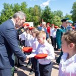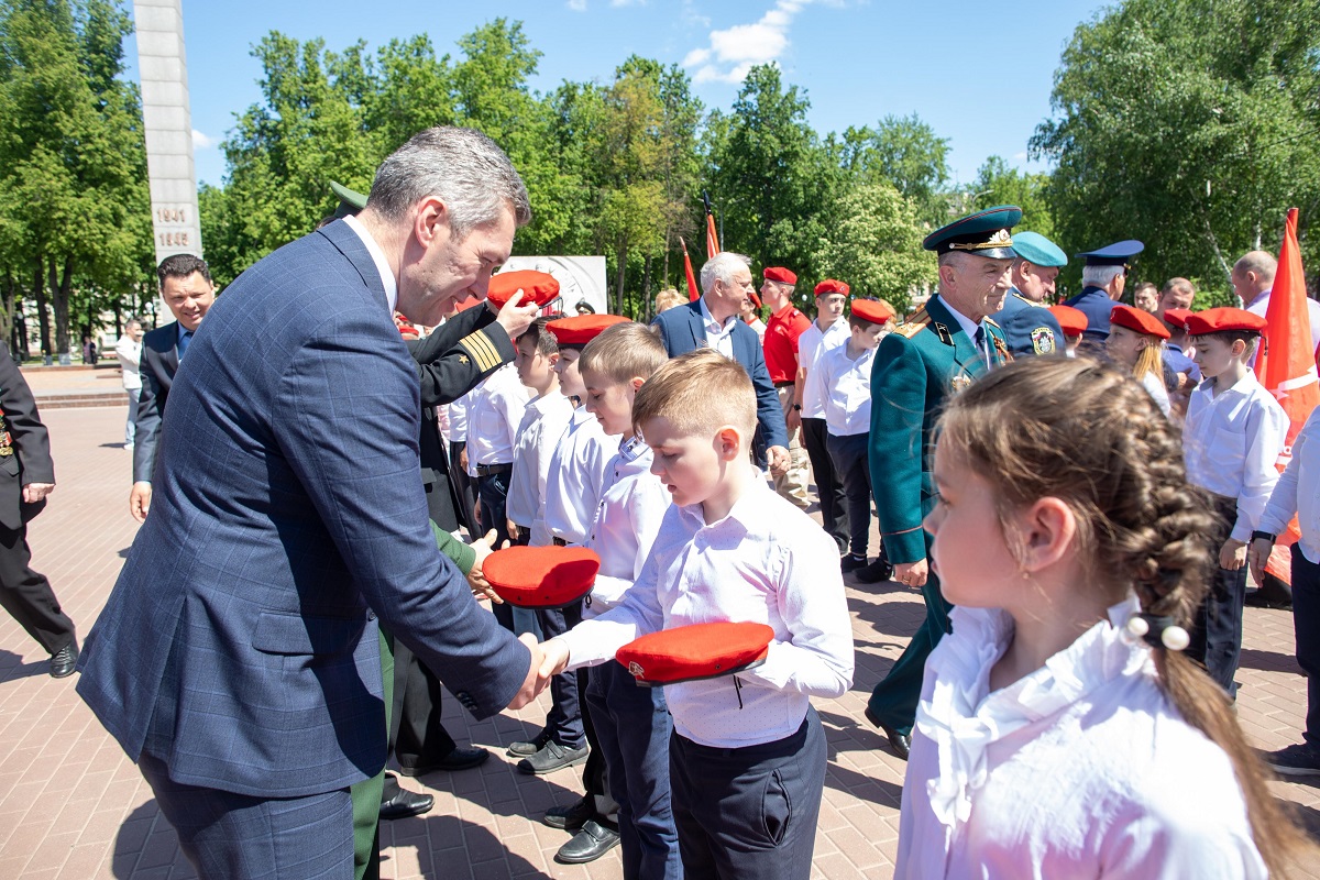 В память о воинах, погибших на фронтах Великой Отечественной войны, была объявлена минута молчания, а после участники возложили цветы к Вечному огню. Затем 170 школьников произнесли юнармейскую клятву.