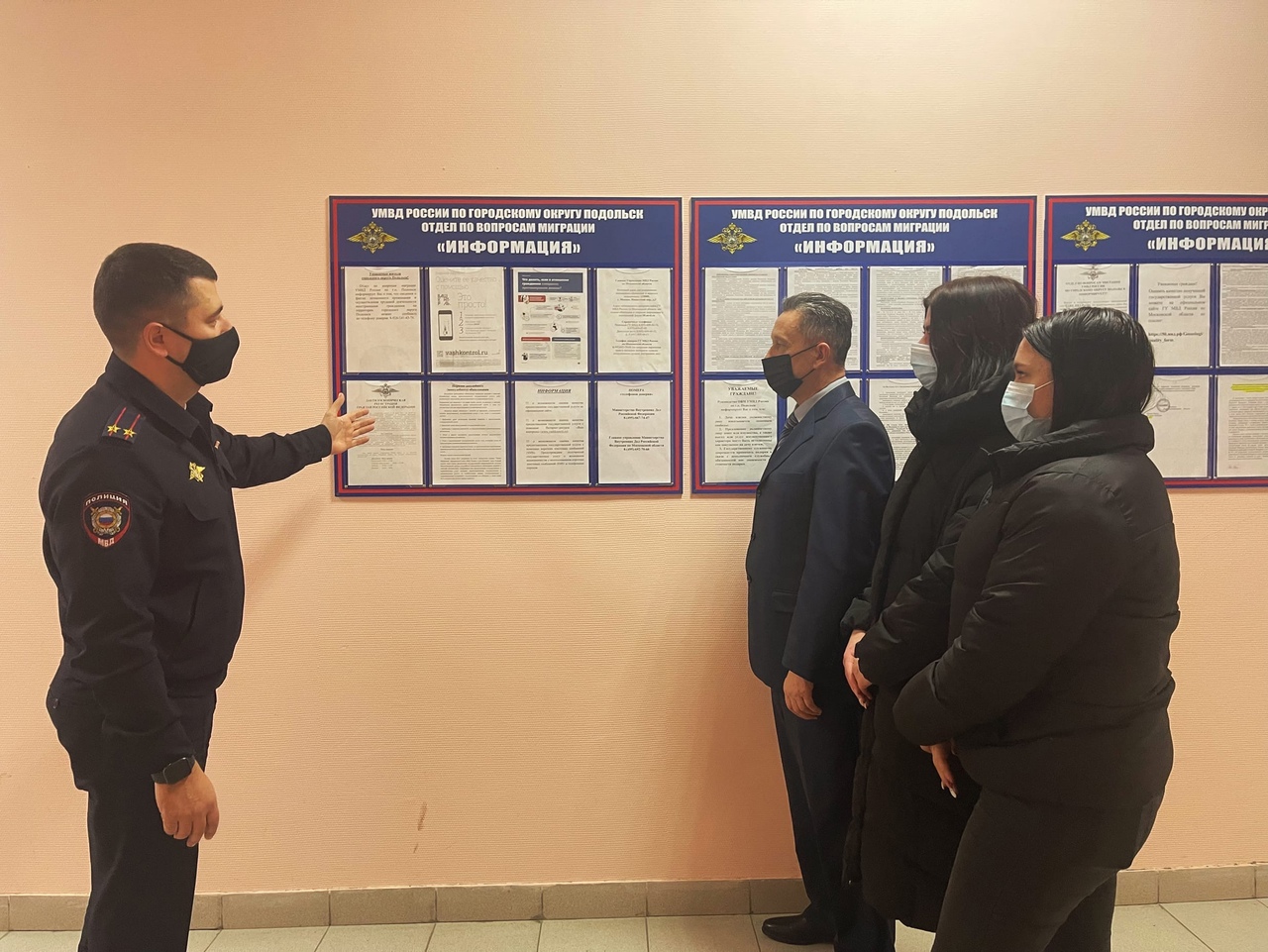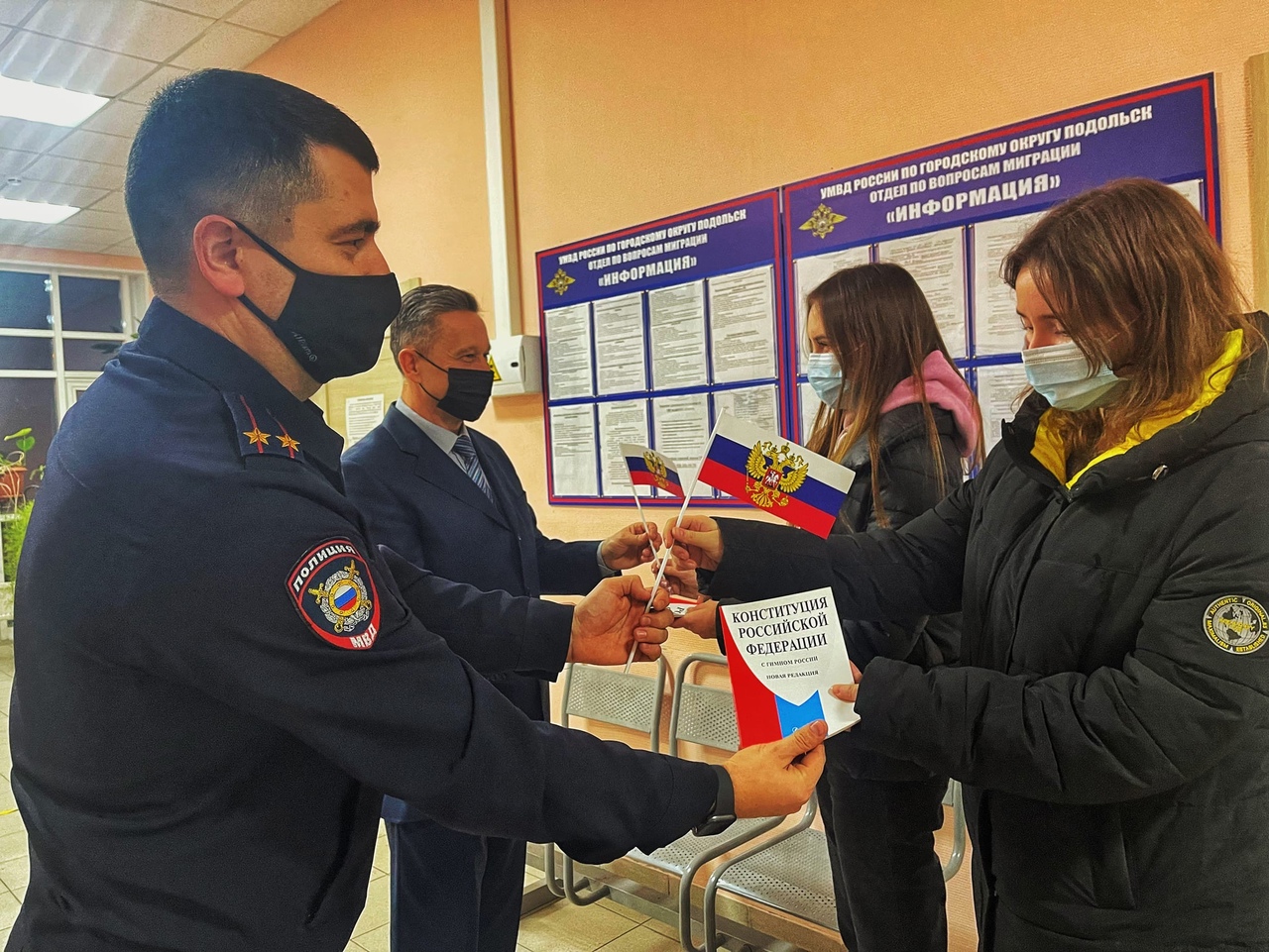 Начальник Отдела по вопросам миграции УМВД России по г.о. Подольск подполковник полиции Вадим Яровиков совместно с председателем Общественного совета Вячеславом Поповым провел акцию в преддверии Дня Конституции.