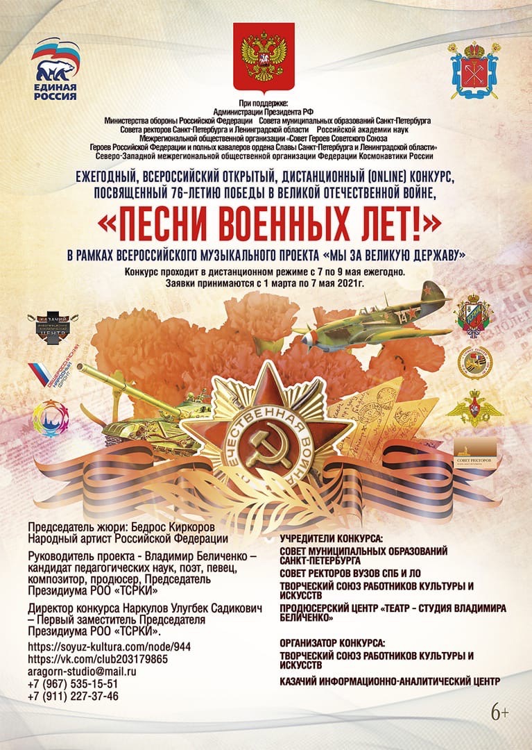 Детский вокальный ансамбль «Смородина» ДК «Металлург» под руководством М.С. Жарковой и концертмейстера С.Д. Козлова стал лауреатом II степени ежегодного Всероссийского открытого конкурса «Песни военных лет», посвященного 76-летию Победы в Великой Отечественной войне. Солисты ансамбля также получили дипломы Мария Шмелева — лауреат I степени, Валерия Куц — лауреат I степени и Марию Полевая — лауреат III степени.