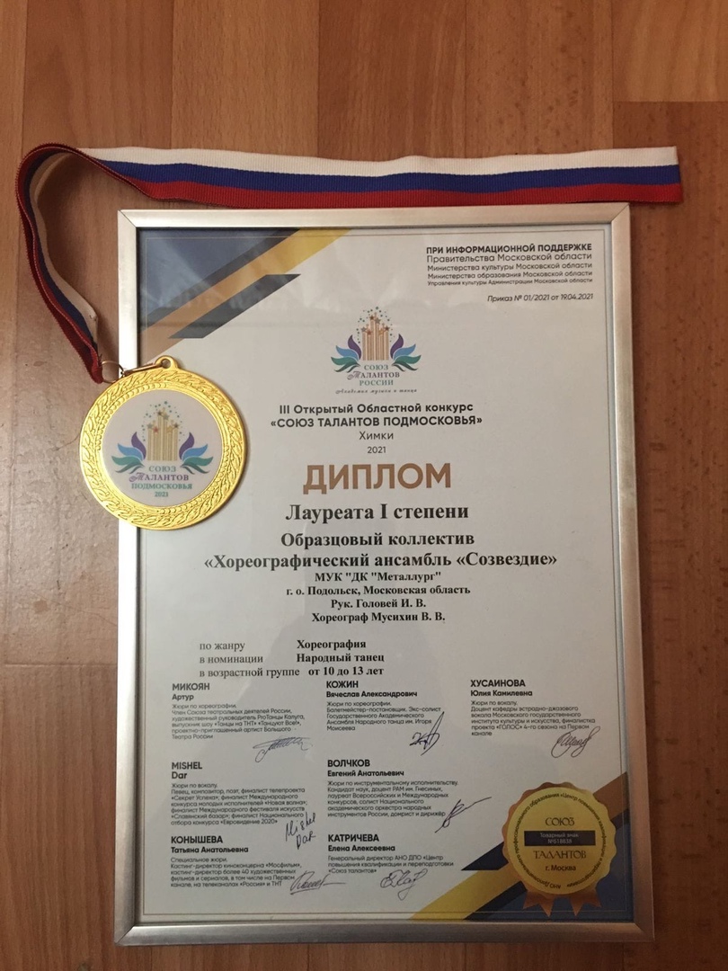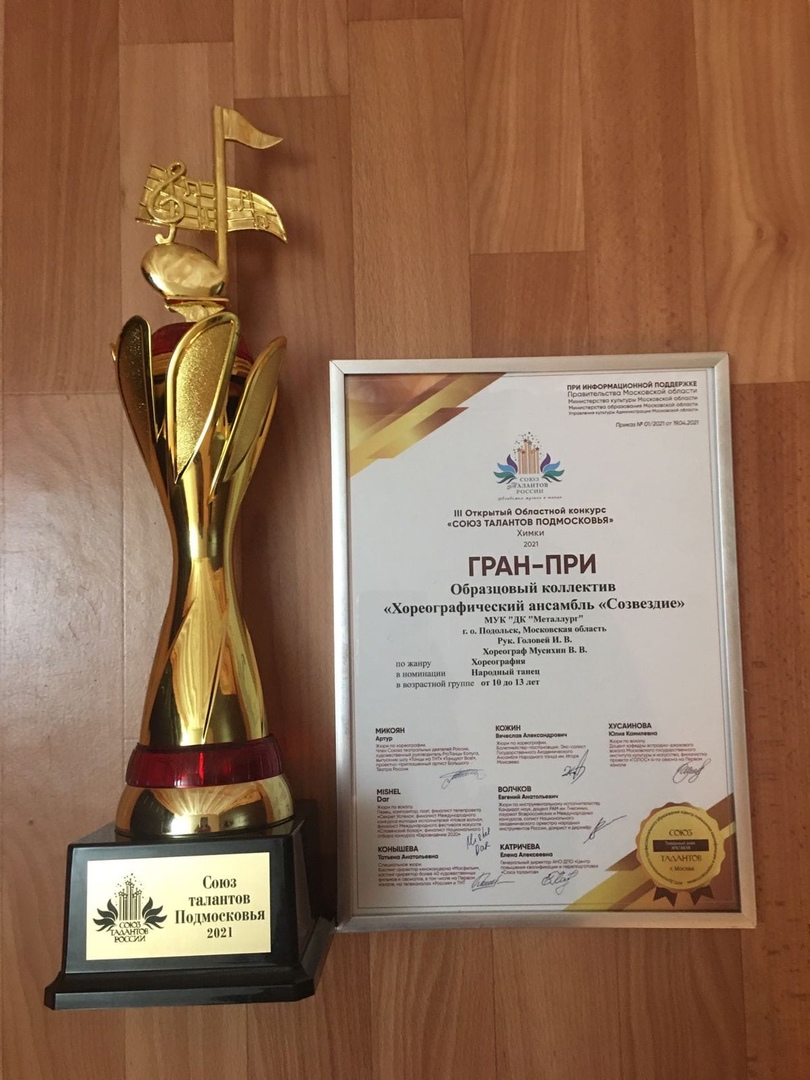 3 октября Образцовый коллектив «Хореографический ансамбль «Созвездие» (рук. И.В. Головей, хореограф В.В. Мусихин) принимал участие в III Открытом Областном конкурсе «Союз талантов Подмосковья» при информационной поддержке Правительства Московской области, Министерства культуры Московской области, Министерства Образования Московской области и Управления культуры Администрации Московской области в Г.о. Химки. Ансамбль стал лауреатом 1 степени и обладателем Гран-При в номинации «Народный танец» в возрастной группе 10-13 лет. Поздравляем руководителя ансамбля И.В.Головей и хореографа ансамбля В.В.Мусихина, а также всех ребят с победой.