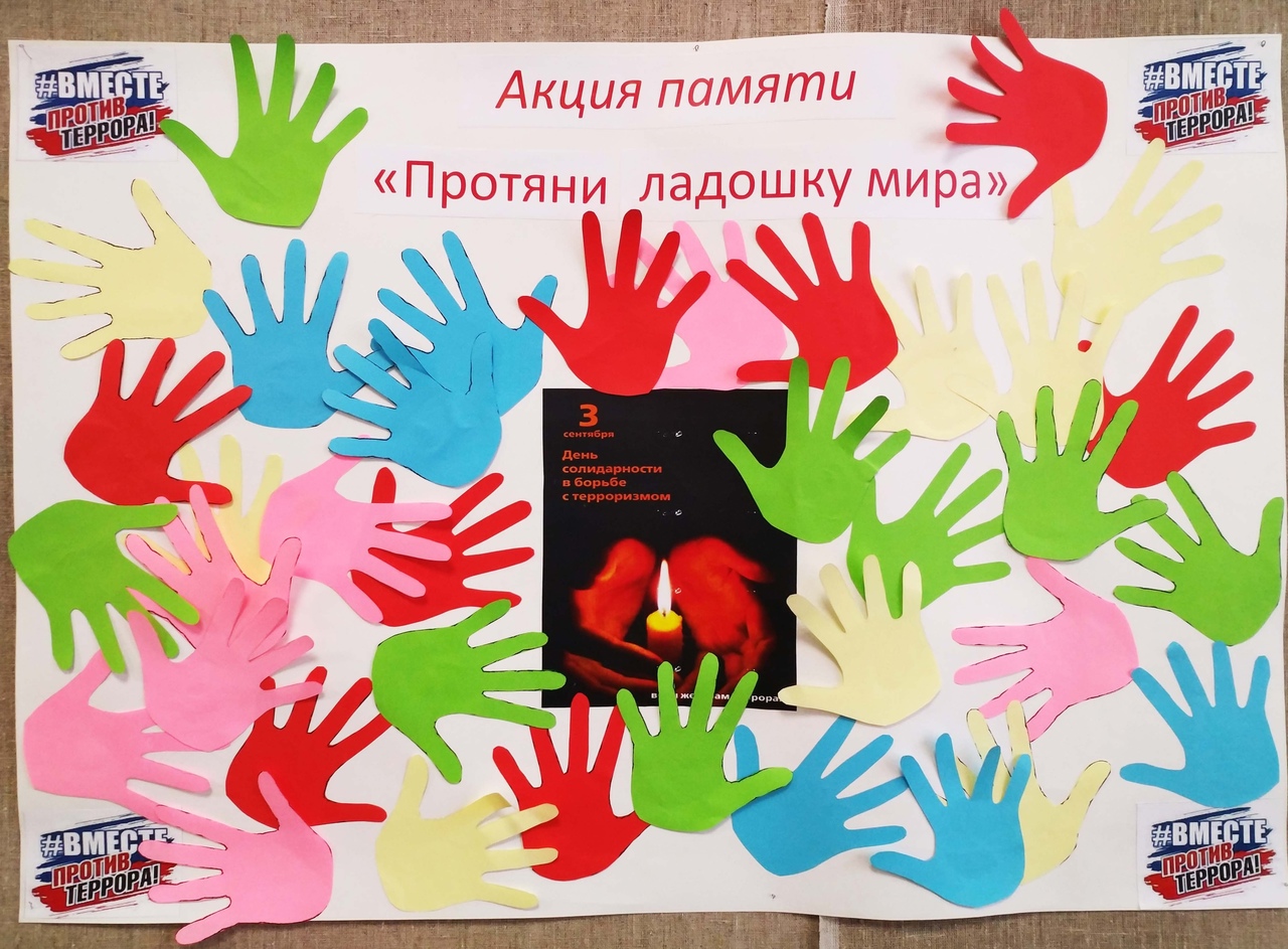 Прошла акция памяти «Протяни ладошки миру». Сегодня в день солидарности в борьбе с терроризмом вспоминаем тех, кто погиб в темном пекле пылающего ада и кто выжил в эти страшные сентябрьские дни.