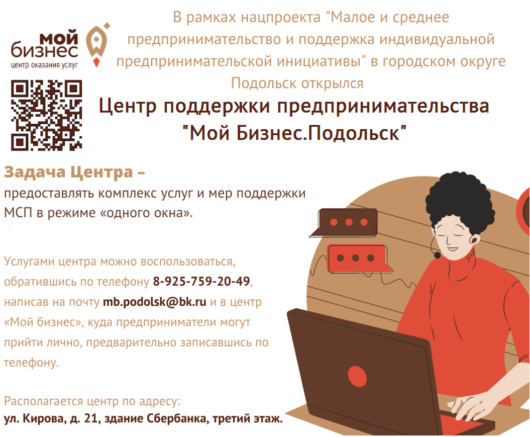 В рамках нацпроекта «Малое и среднее предпринимательство индивидуальной предпринимательской инициативы» в Подольске открыт Центр поддержки предпринимательства «Мой бизнес.Подольск».