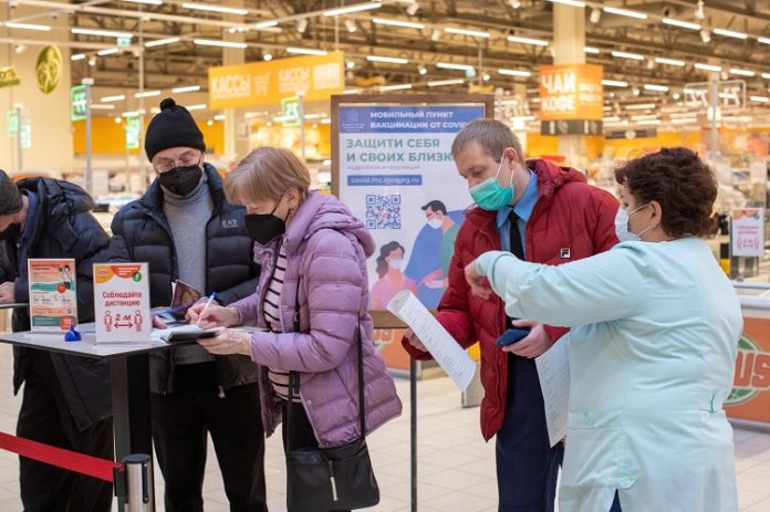 На фото Кирилла Шутилина: мобильный пункт вакцинации в гипермаркете «Глобус»