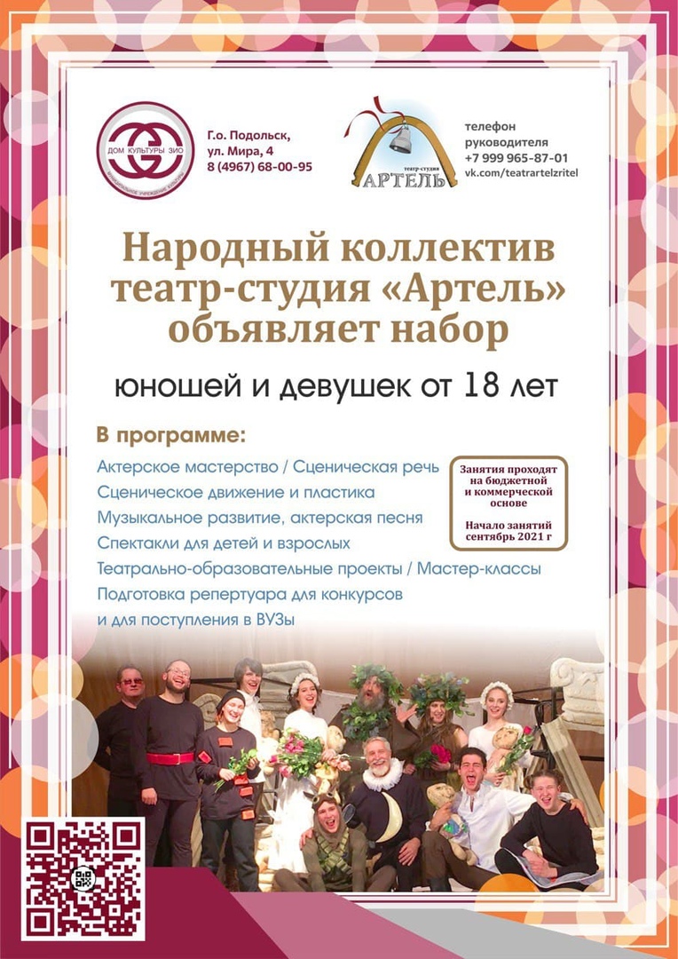 Записаться в коллектив можно напрямую через его руководителя — контакт для связи указан на афише каждого коллектива.