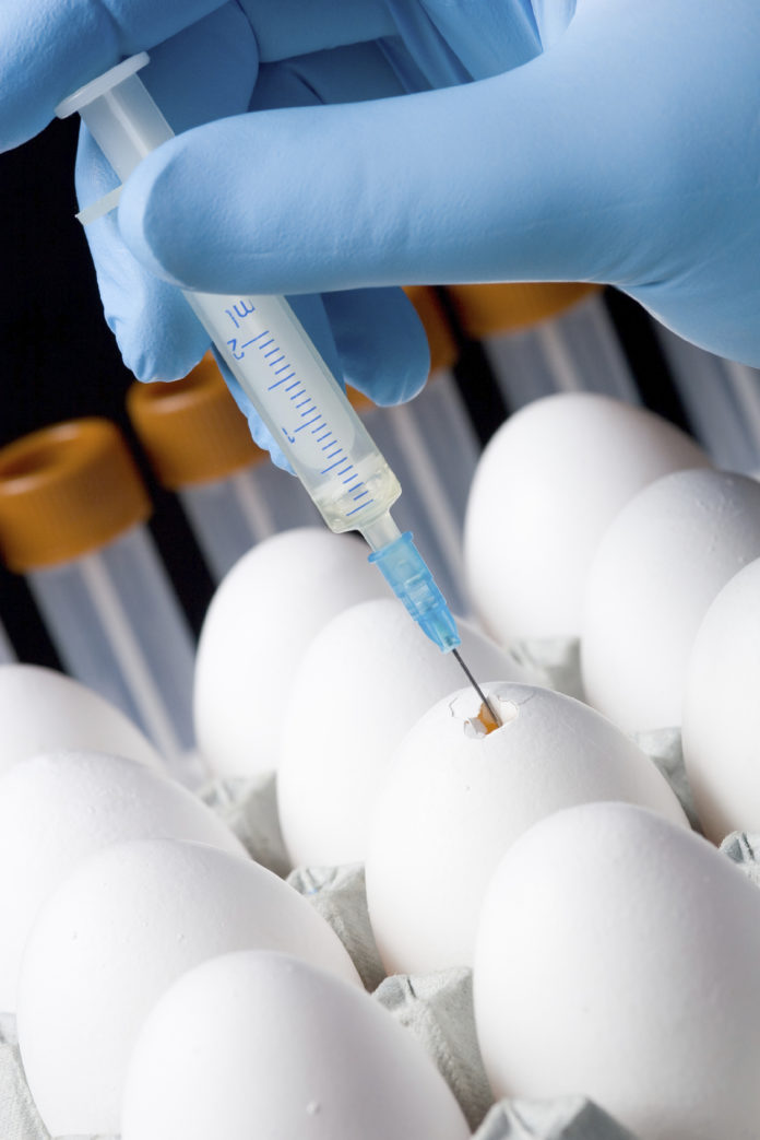 Во Всероссийском научно-исследовательском институте генетики и разведения сельскохозяйственных животных (ВНИИГРЖ) вывели специальную породу кур, которая дает яйца, которые подходят для применения как яйца Clean Eggs. Их используют для производства вакцин против гриппа человека, также они являются стандартным выбором для производства инактивированных вакцин для ветеринарии в Европе и других регионах мира. Внутрь яйца с помощью укола подсаживают вирус, и он там размножается в течение нескольких суток (точное время зависит от конкретной вакцины). Далее яйца держат в термостате при определенной температуре, снимают и собирают эмбриональную жидкость с вирусом.