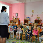 Дошкольники активно отвечали на вопросы инспектора о том, на какой цвет светофора нужно переходить дорогу и что нельзя делать на проезжей части. Также в игровой форме воспитанникам рассказали о необходимости пристегиваться ремнями безопасности при поездках в автотранспорте.