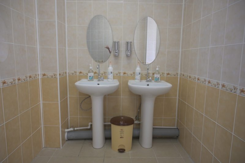 В школе №25 капитальный ремонт туалетных комнат завершен, в соответствии с современными нормами в санузлах обязательно предусмотрены закрывающиеся кабинки, новая сантехника, облицовочная плитка, раковина, бумагодержатели и полотенцесушитель, мыло и санитайзеры.