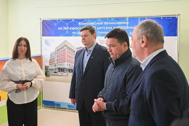 Губернатор Андрей Воробьëв проверил ход подготовки к открытию поликлиники на улице Ленинградской в сентябре 2021 года