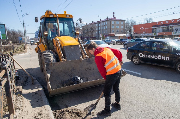 Инженер МУЖРП № 5 Алексей Кондратьев вместе с другими сотрудниками организации убирал территорию вдоль улицы Кирова: