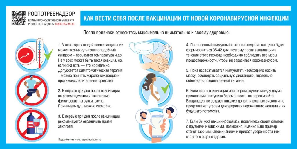 Роспотребнадзор напоминает, что COVID-19 – очень опасная инфекция, которая может иметь неблагоприятный исход. Инфекционисты и эпидемиологи единодушны: остановить дальнейший рост заболеваемости и окончательно справиться с эпидемией может только вакцинация, которая проводится в течение короткого промежутка времени, когда в популяции создается большой пул защищенных людей и прерываются пути передачи вируса от человека человеку.