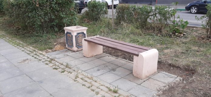 Всего будет установлено 12 комплектов лавочек и урн: по 6 на отрезке до разворота и после него. Предварительно под каждый участок тротуарной плиткой выложили специальные «карманы».