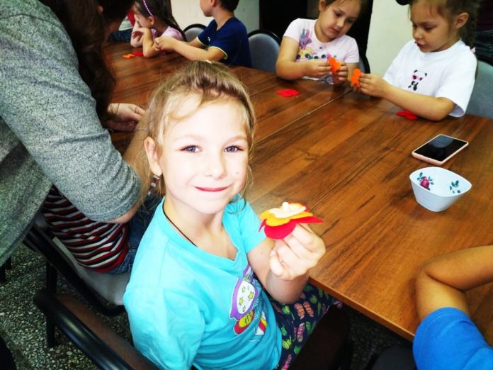 Наталья Егоровна подготовила простые материалы для поделки — разноцветный фетр, тоненькая проволочка и бусинки. Поскольку дети еще маленькие, то им конечно помогали воспитатель подготовительной группы и руководитель кружка. Полезное времяпрепровождение пролетело незаметно и очень быстро, и в результате симпатичное украшение для мамы бабушки или сестренки готово.