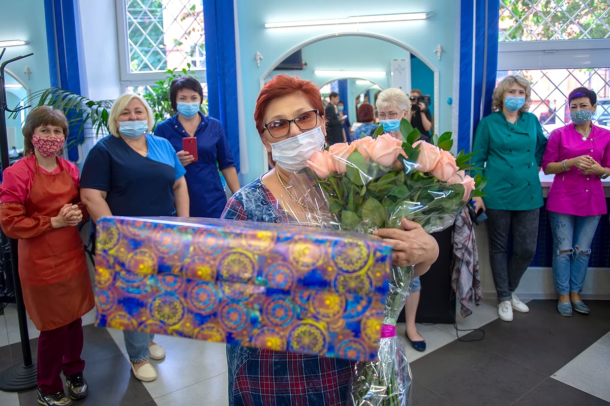 «Елена Викторовна Смирнова в 1976 году пришла ученицей в парикмахерскую на Ревпроспекте, 52/39, здесь начала свою трудовую деятельность мастером мужского зала, работает на этом предприятии всю жизнь и с 2003 года – возглавляет его.