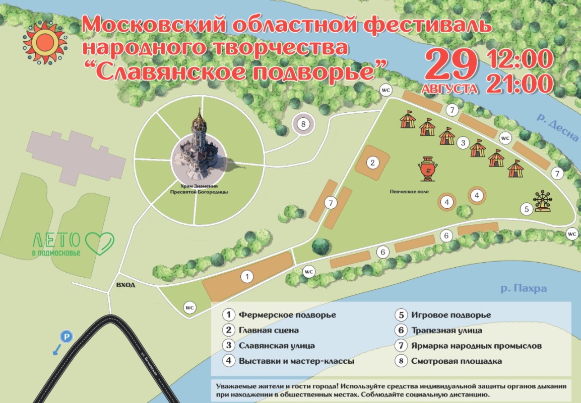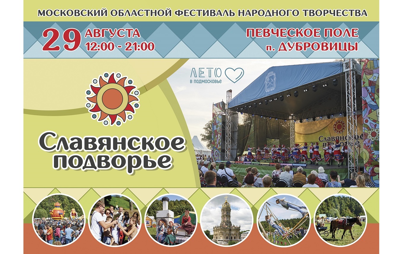 В воскресенье, 29 августа, с 12.00 до 21.00 на Певческом поле поселка Дубровицы Городского округа Подольск у подножия храма Знамения Пресвятой Богородицы в 12-й раз пройдет Московский областной фестиваль народного творчества «Славянское подворье». Организаторами фестиваля выступают Министерство культуры Московской области, администрация Городского округа Подольск, РОО «Московское областное музыкальное общество», Государственный Российский дом народного творчества им. В.Д. Поленова.