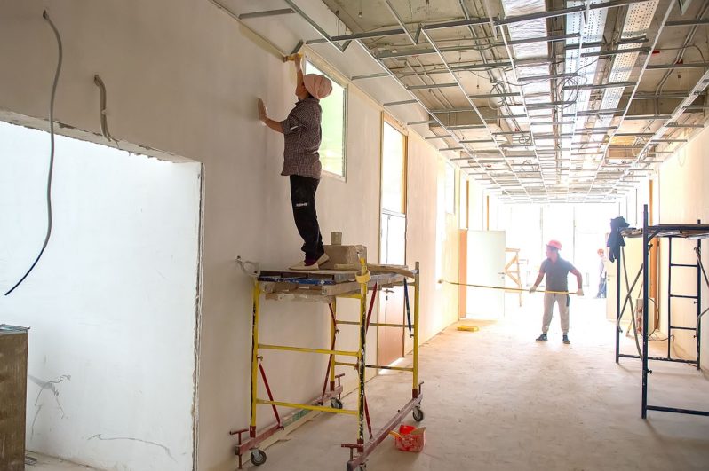 На объекте задействовано более 280 рабочих. Основные усилия направлены на проведение чистовых отделочных работ. В стадии завершения – благоустройство территории, физкультурно-спортивная зона; установлены площадки для игр и отдыха, беседки, ведётся озеленение. Основные строительно-монтажные работы необходимо завершить до 8 августа и перейти к пусконаладке оборудования.