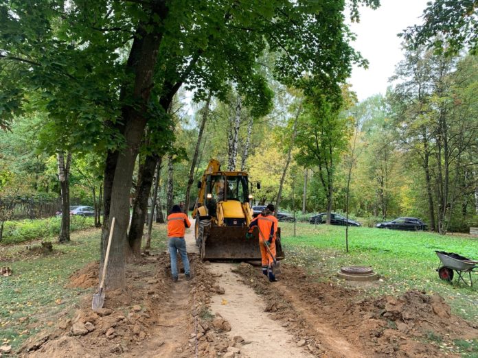 В четверг, 16 сентября начались работы по строительству двух тротуаров, на месте «народных троп» на Больничном проезде, вблизи дома 2, корпус 1.