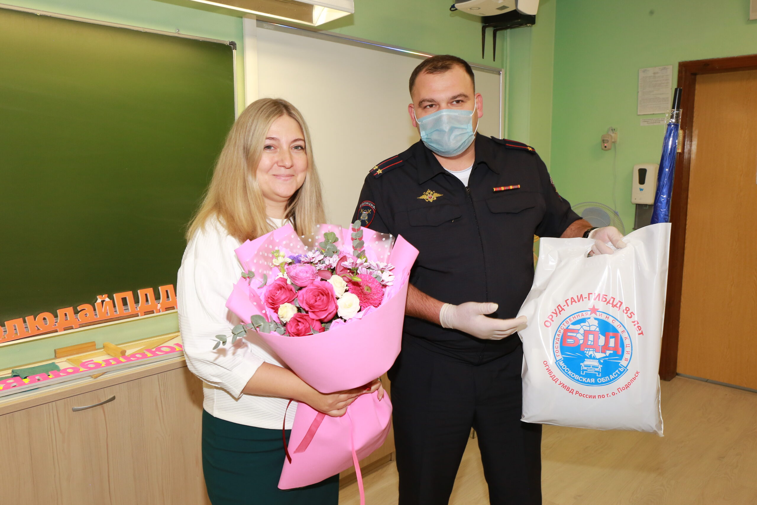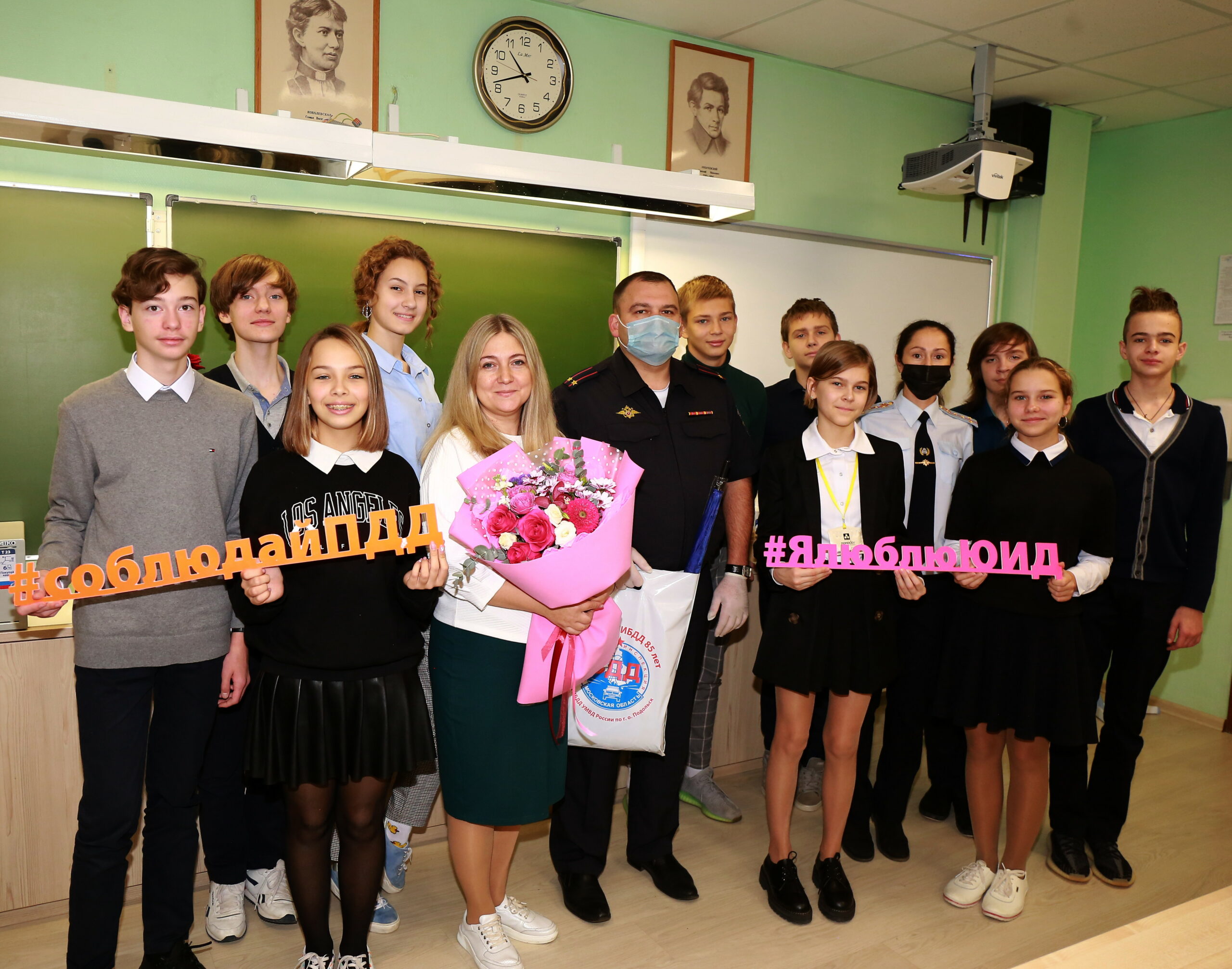 В канун празднования Дня учителя начальник Госавтоинспекции Подольска подполковник полиции Юрий Викторович Черепянский провел урок безопасности с отрядом ЮИД «Живые знаки», наставником которого является Осипова Валентина Васильевна, заместитель директора по воспитательной работе МОУ «СОШ № 29 имени П.И. Забродина» г.о. Подольск Московской области, очень творческий и инициативный педагог. В своей работе она использует разнообразные методы и технологии в изучении ПДД РФ. Одним из таких инновационных методов является социальный проект «Живые знаки», автором и руководителем которого она является уже 4 года. Цель проекта — формирование навыков осознанного безопасного поведения несовершеннолетних на дороге, доведенного до автоматизма! На муниципальном, региональном и Всероссийском уровне проект получил высокую оценку и был включен в обзор лучших практик добровольческих организаций в сфере помощи участникам дорожного движения и взаимодействия подразделениями Госавтоинспекции на региональном уровне, рекомендован к тиражированию на территории Российской Федерации. Госавтоинспекция благодарит Валентину Васильевну за огромный вклад в продвижение ЮИДовского движения и творческий подход в организацию работы по профилактике детского дорожно-транспортного травматизма среди детей и подростков.