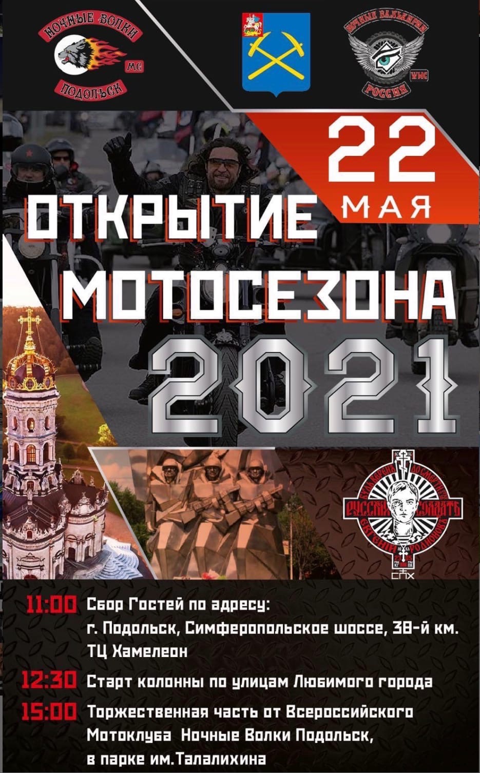 15:00 Торжественная часть от Всероссийского Мотоклуба Ночные Волки Подольск в парке им.Талалихина