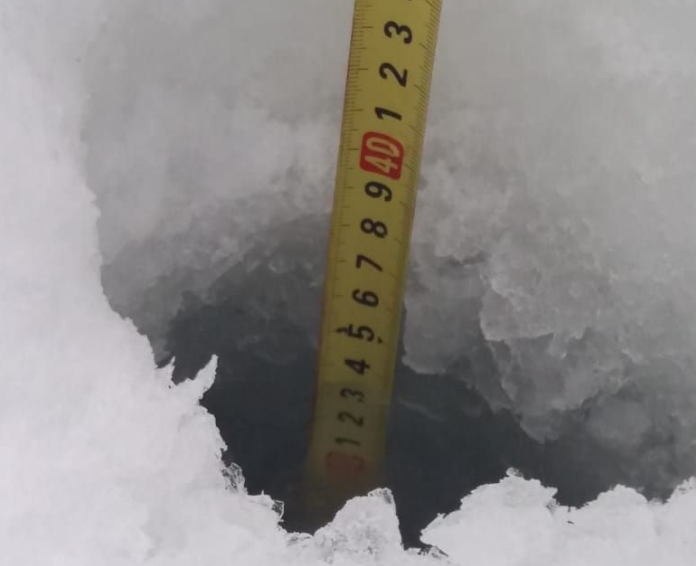 В Подольском ТУ ГКУ МО «Мособлпожспас» сообщили, что по результатам промеров, проведенных 19 февраля, толщина льда на реке Пахре составила 40 см. Напомним, что замеры производятся ежедневно в рамках месячника «Тонкий лед».
