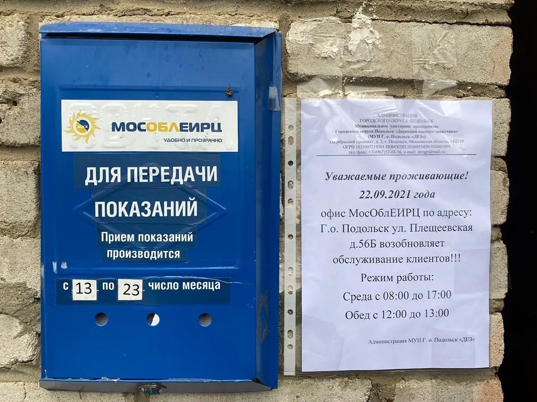 В феврале 2021 года поступил ответ, что Управление ЕИРЦ Подольск проводит мероприятия по устранению несоответствий требований, предъявляемым к офисам очного обслуживания и рассматривает возможность возобновления работы клиентского офиса в формате временного пункта очного обслуживания с индивидуальным графиком работы. 16 июля 2021 года был получен ответ , что офис возобновит работу в формате временного пункта один раз в неделю, если МУП ДЕЗ проведет косметический ремонт помещения, в котором будет проводиться прием населения.