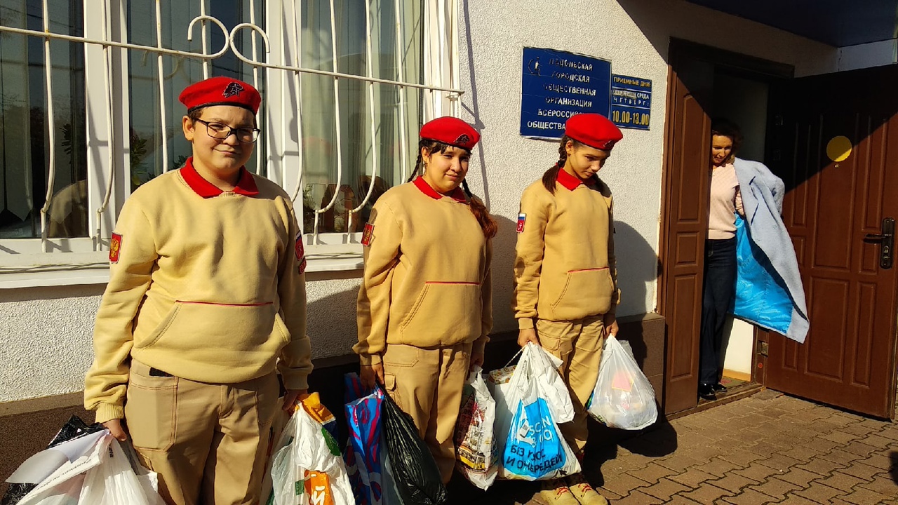Вся школа принимала участие в сборе гуманитарной помощи людям с ограниченными возможностями, а юнармейцы доставили все это по назначению.