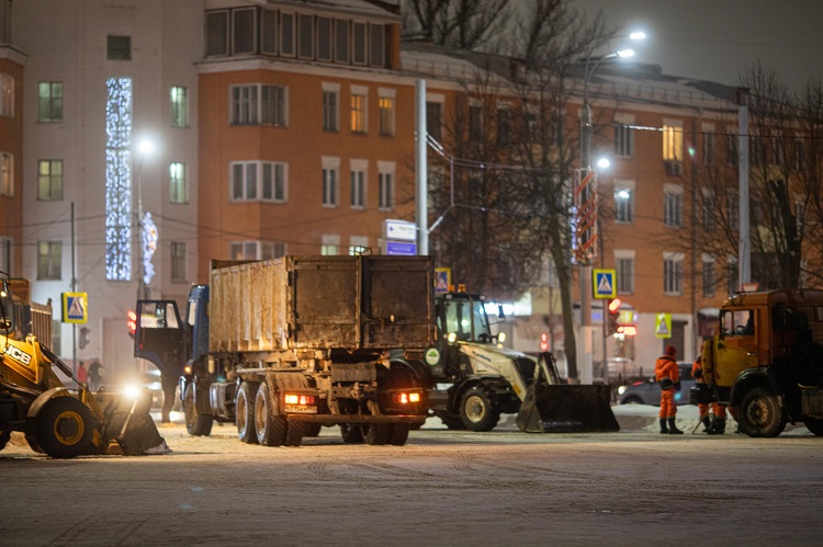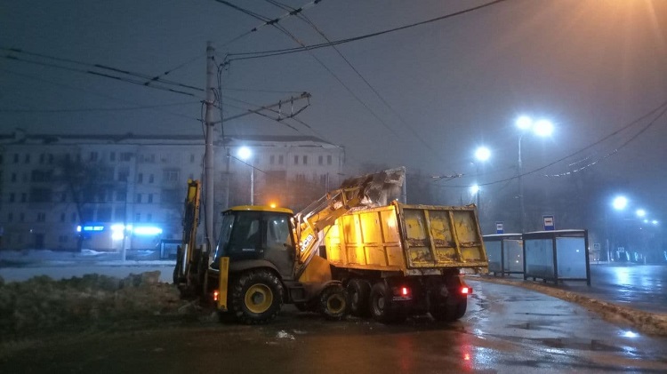 Минувшей ночью работниками Подольского комбината благоустройства осуществлялась работа по вывозу снега с Революционного проспекта, улиц Мраморной, Большой Зеленовской, Вокзальной площади. На Рабочей улице проводилась механизированная уборка снега с привлечением грейдера и лапового погрузчика. Всего за ночь вывезено порядка 600 кубометров снега.