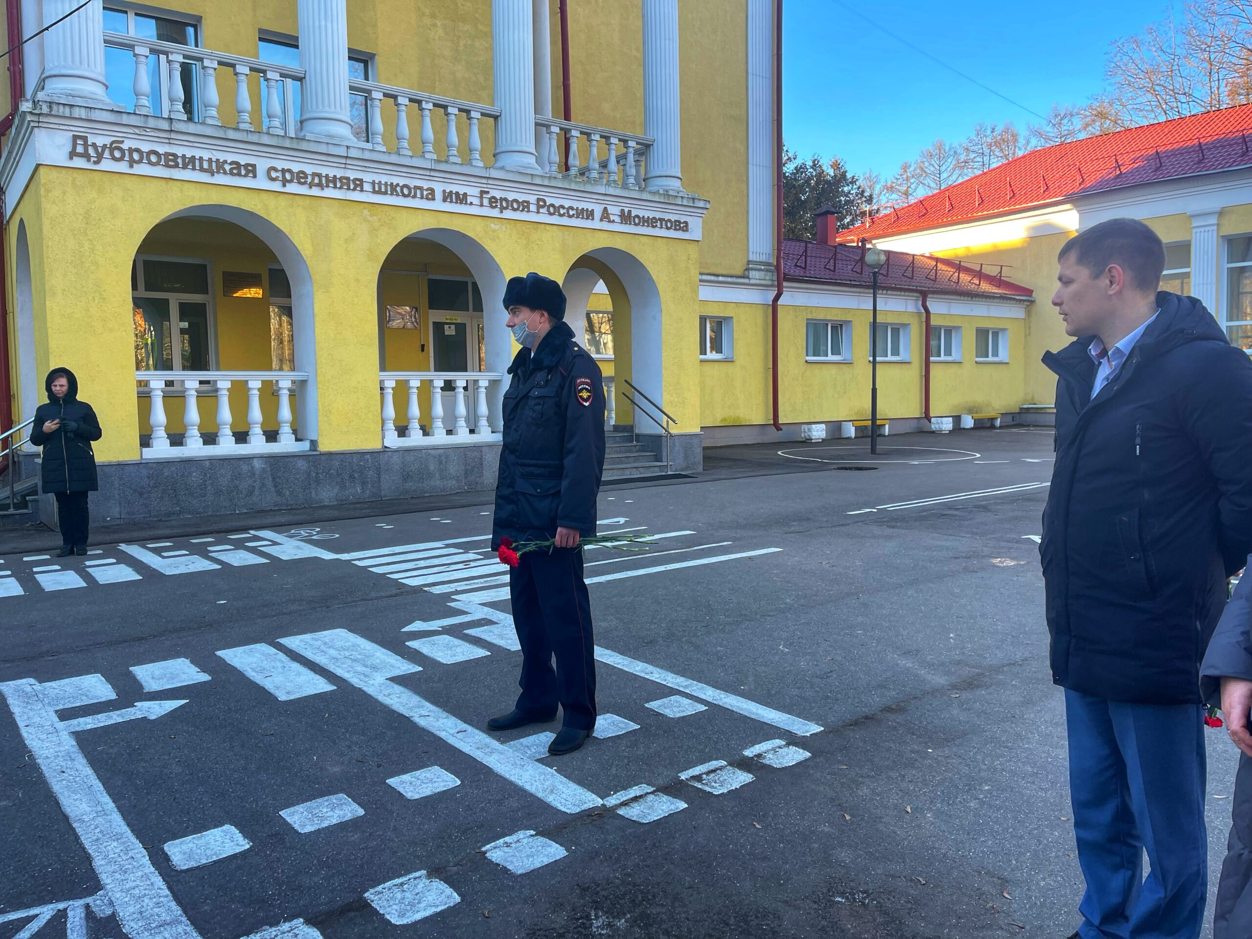 Сотрудники полиции УМВД России по г.о. Подольск совместно с членами Общественного совета при УМВД Геннадием и Валентиной Монетовыми, представителями Администрации округа собрались на территории Дубровицкой школы в день сотрудников органов внутренних дел, почтив память погибших при исполнении служебного долга.