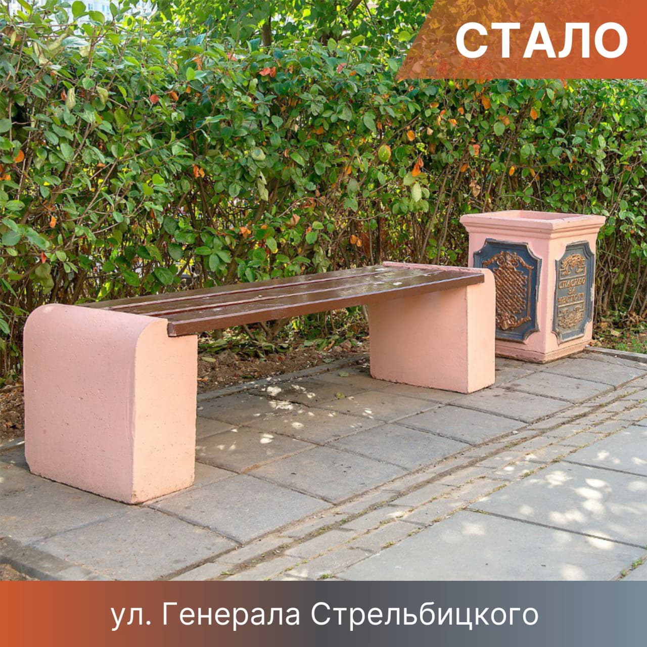 В пешеходной зоне улицы Генерала Стрельбицкого по обращениям жителей также установили новые комплекты лавочек и урн – ранее их здесь не было. Работы выполнены Подольским комбинатом благоустройства.